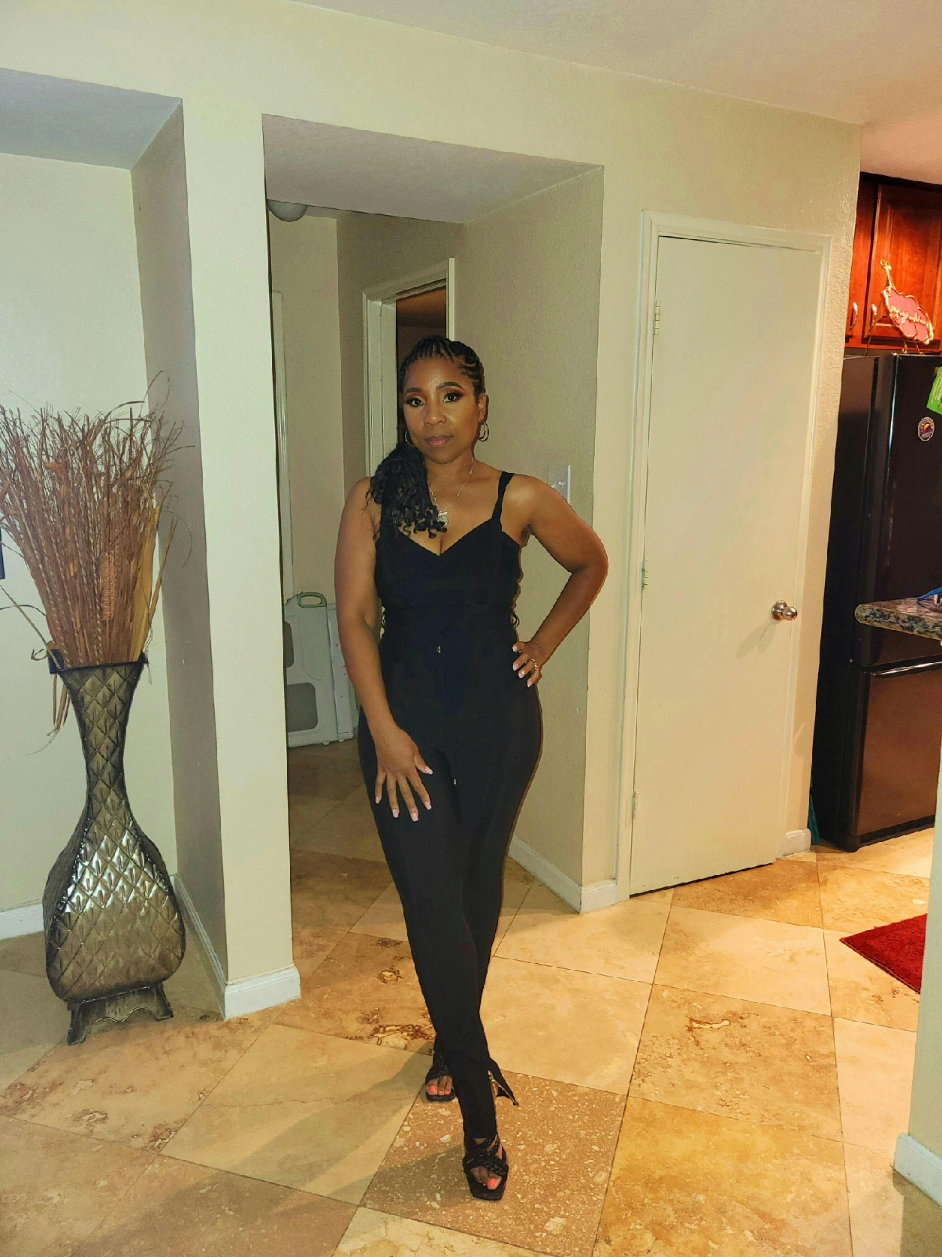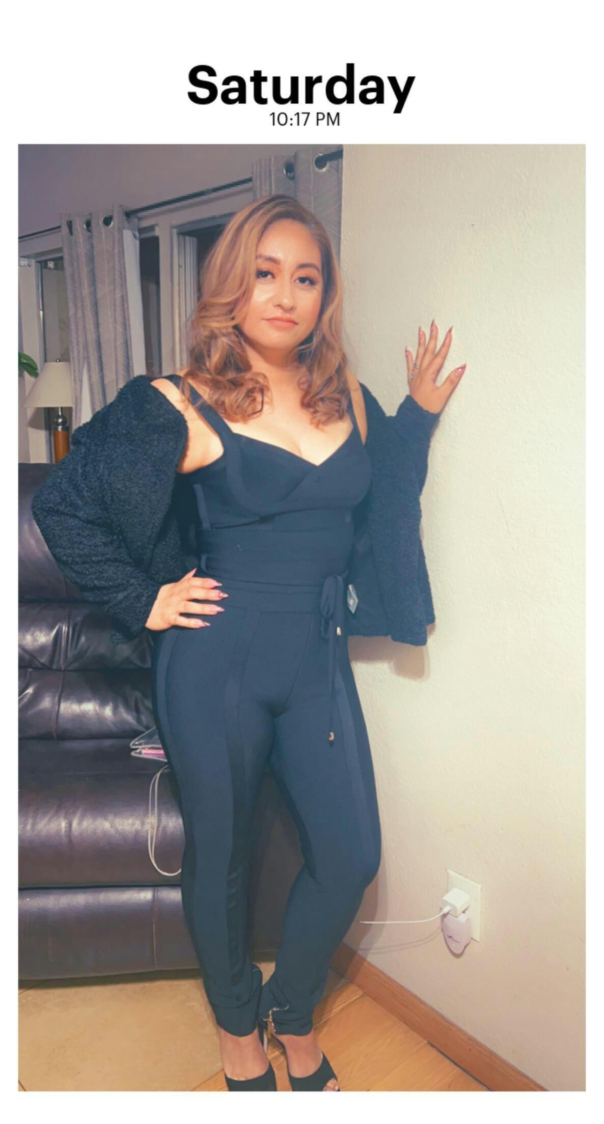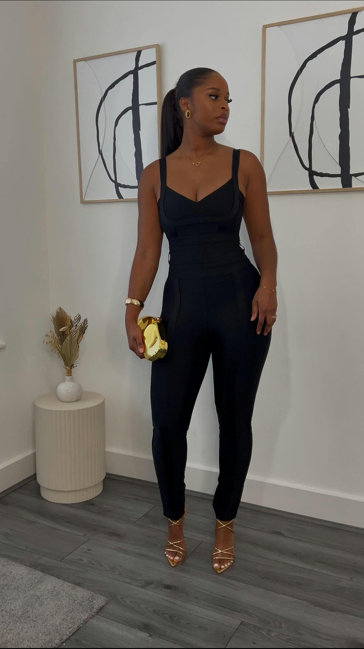 - Get the look: Aleah Bandage Jumpsuit (The influencer is wearing the same style as this product)
