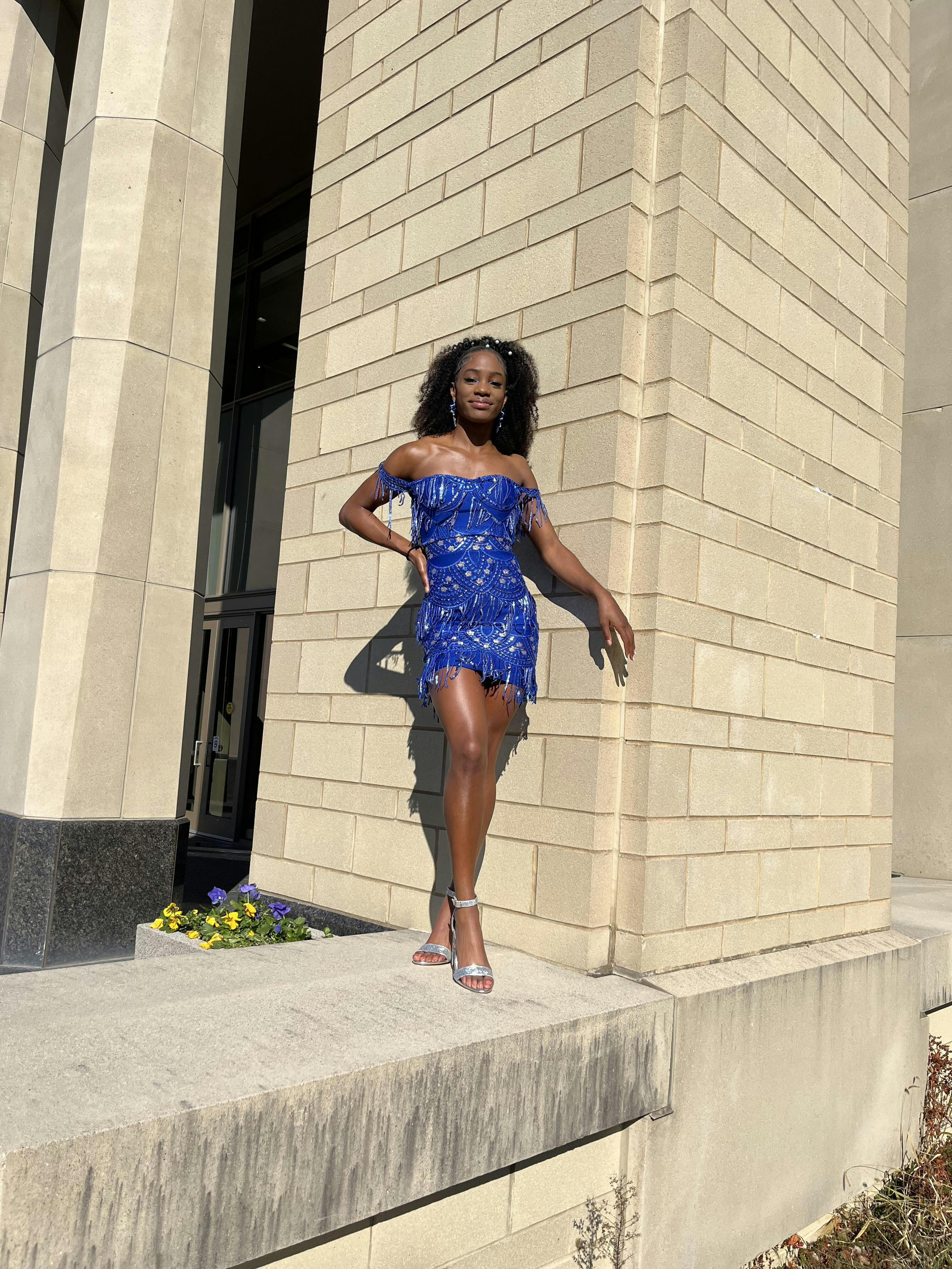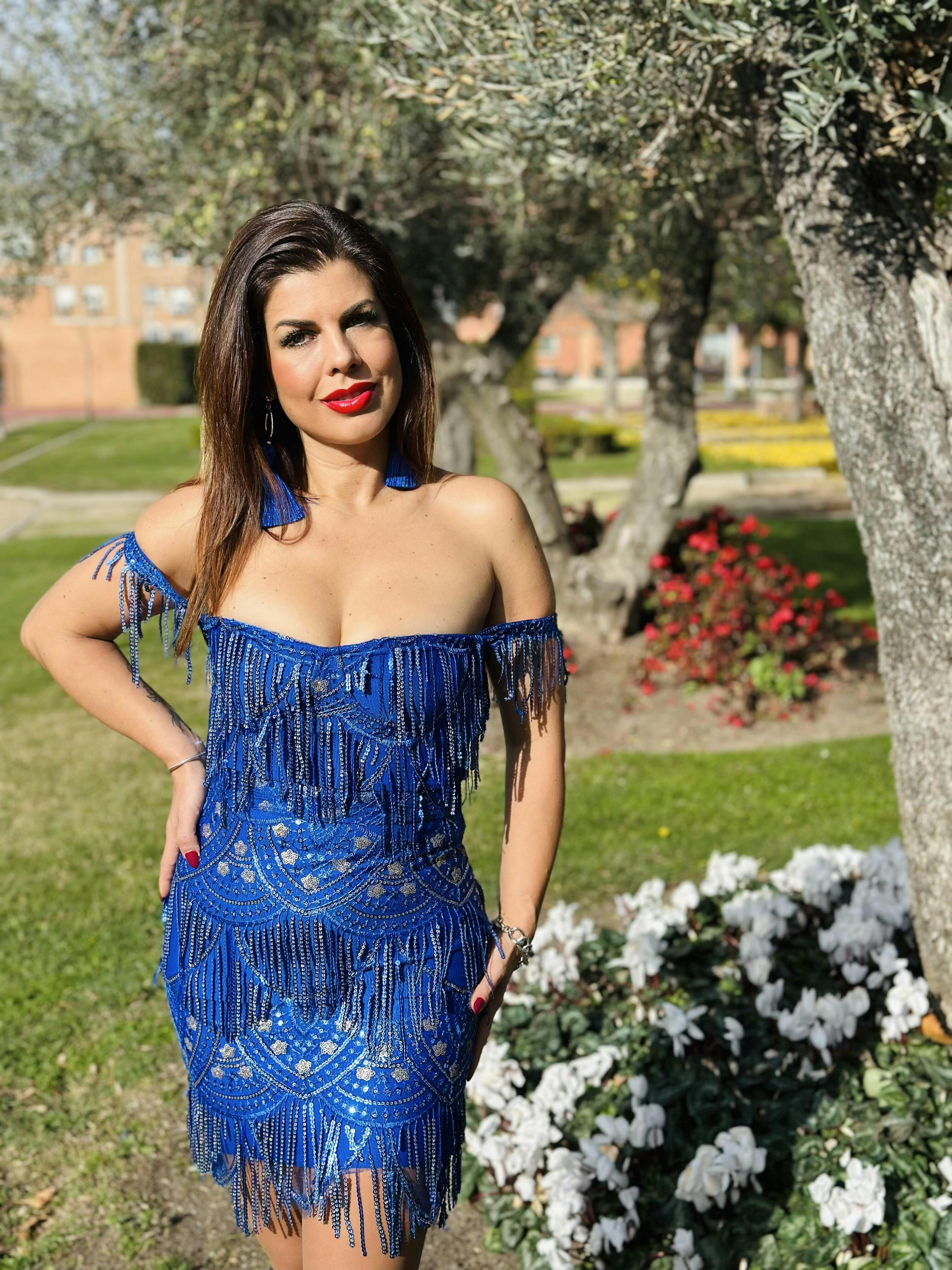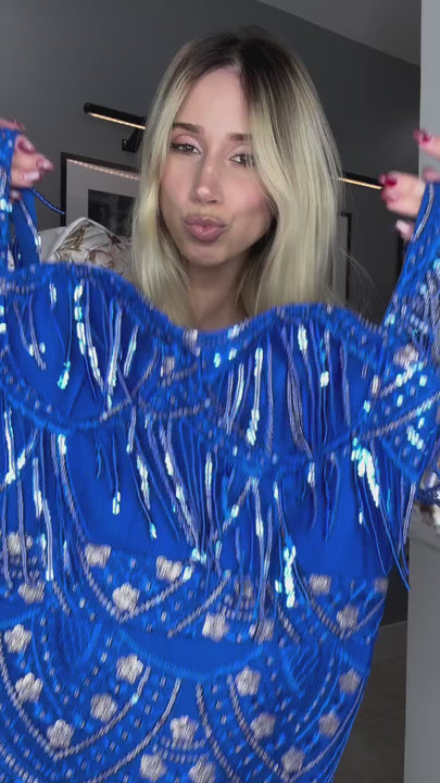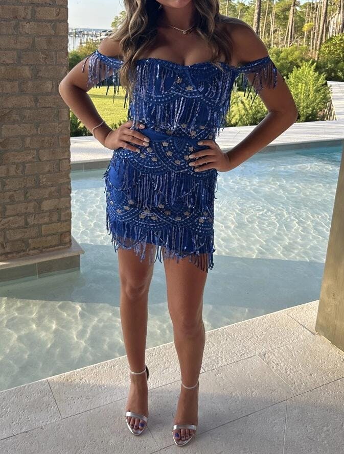 Off-shoulder Sequin Diamond Mini Dress - Blue
