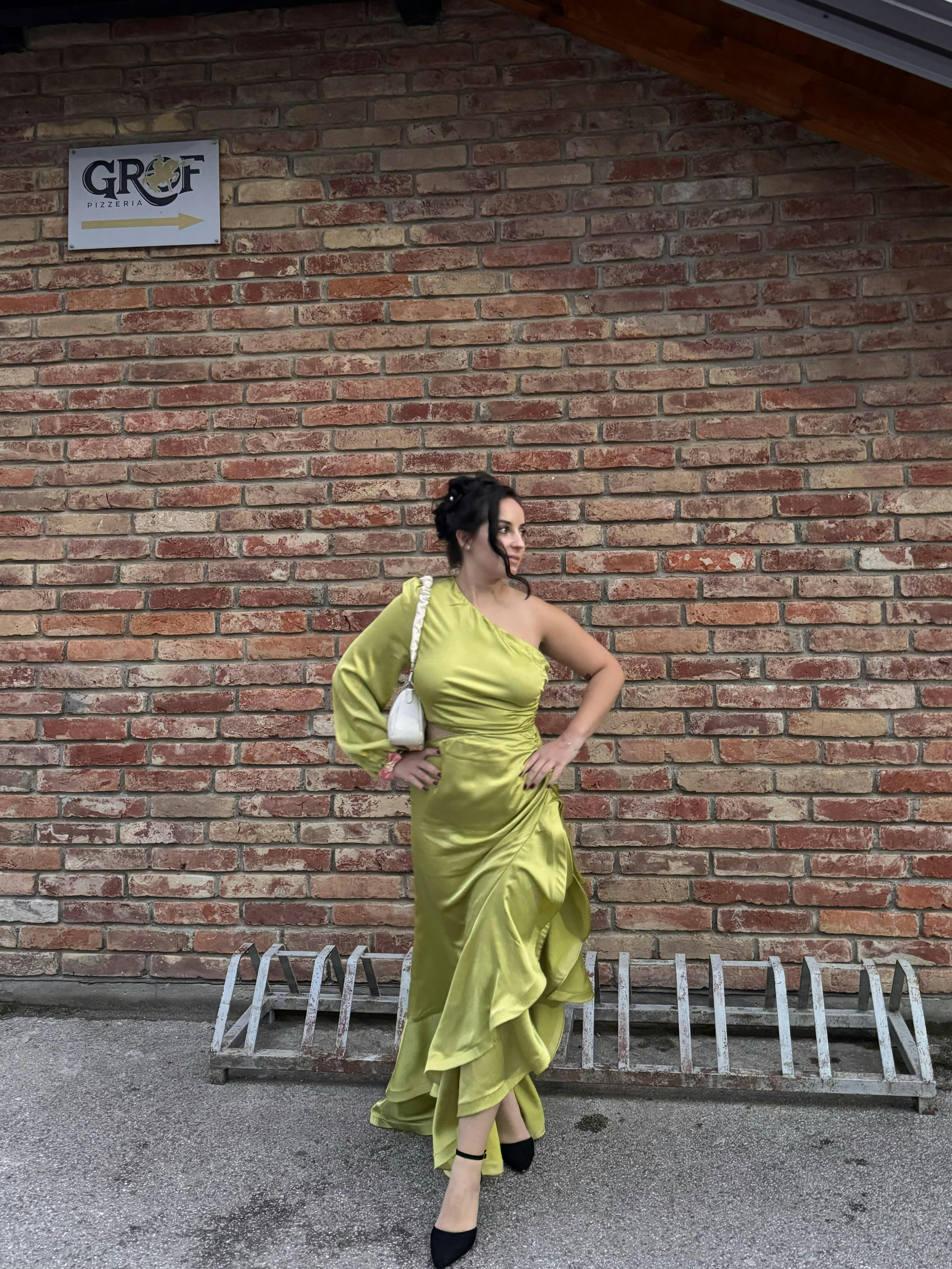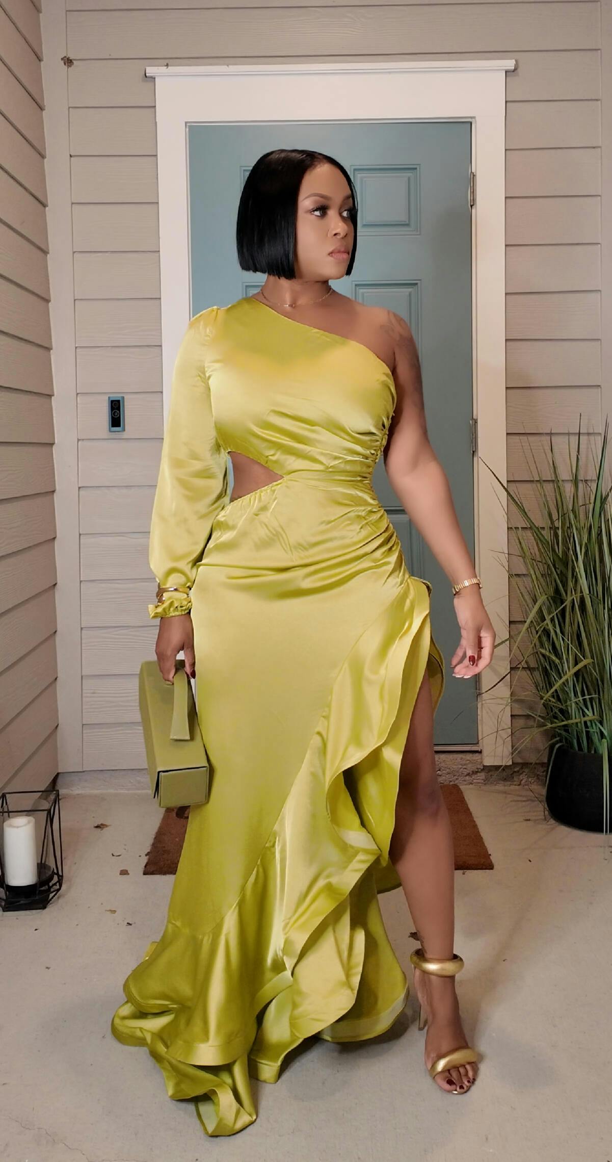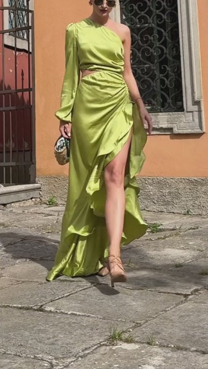 The compliments won't stop rolling in when you're wearing the Beren One Shoulder Satin Maxi Dress! A special peppermint green tone adds a key touch of style to this satin, one-shoulder dress. The curviline-fitting design of this dress continues to the lacy hem. Pair with stilettos and your favourite mini bag for an unforgettable look.