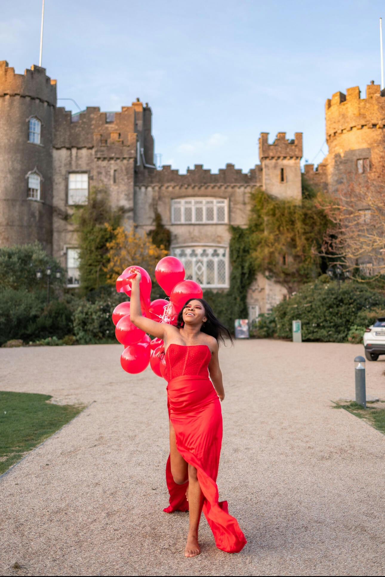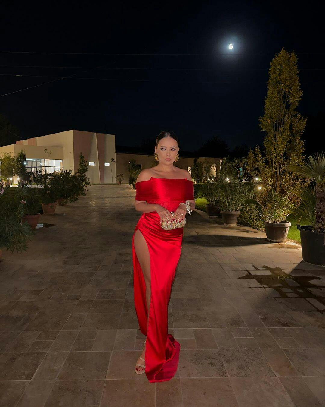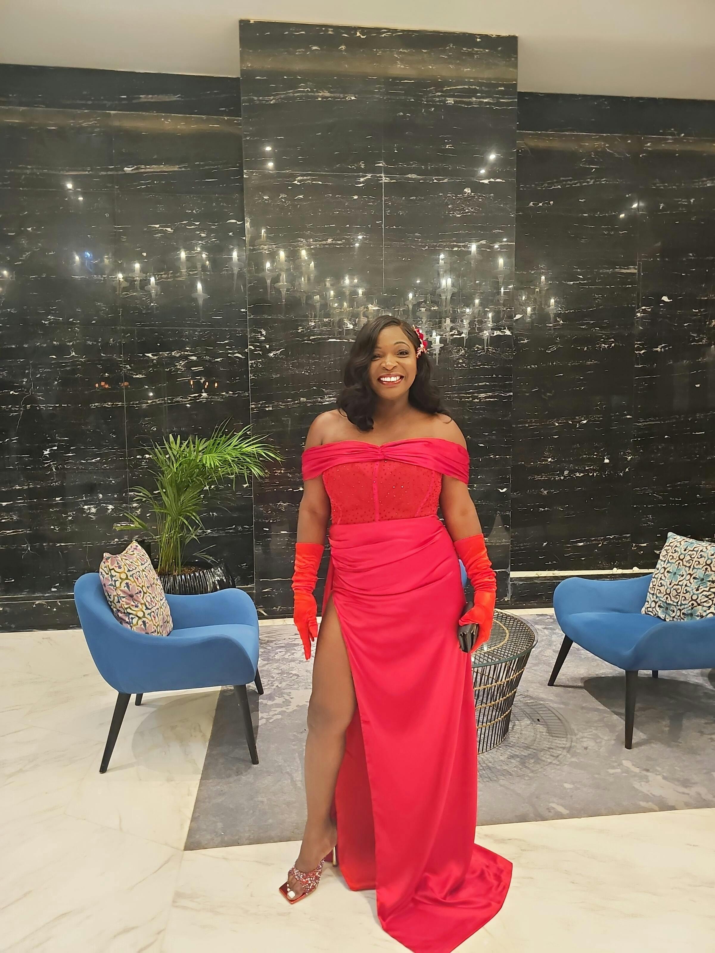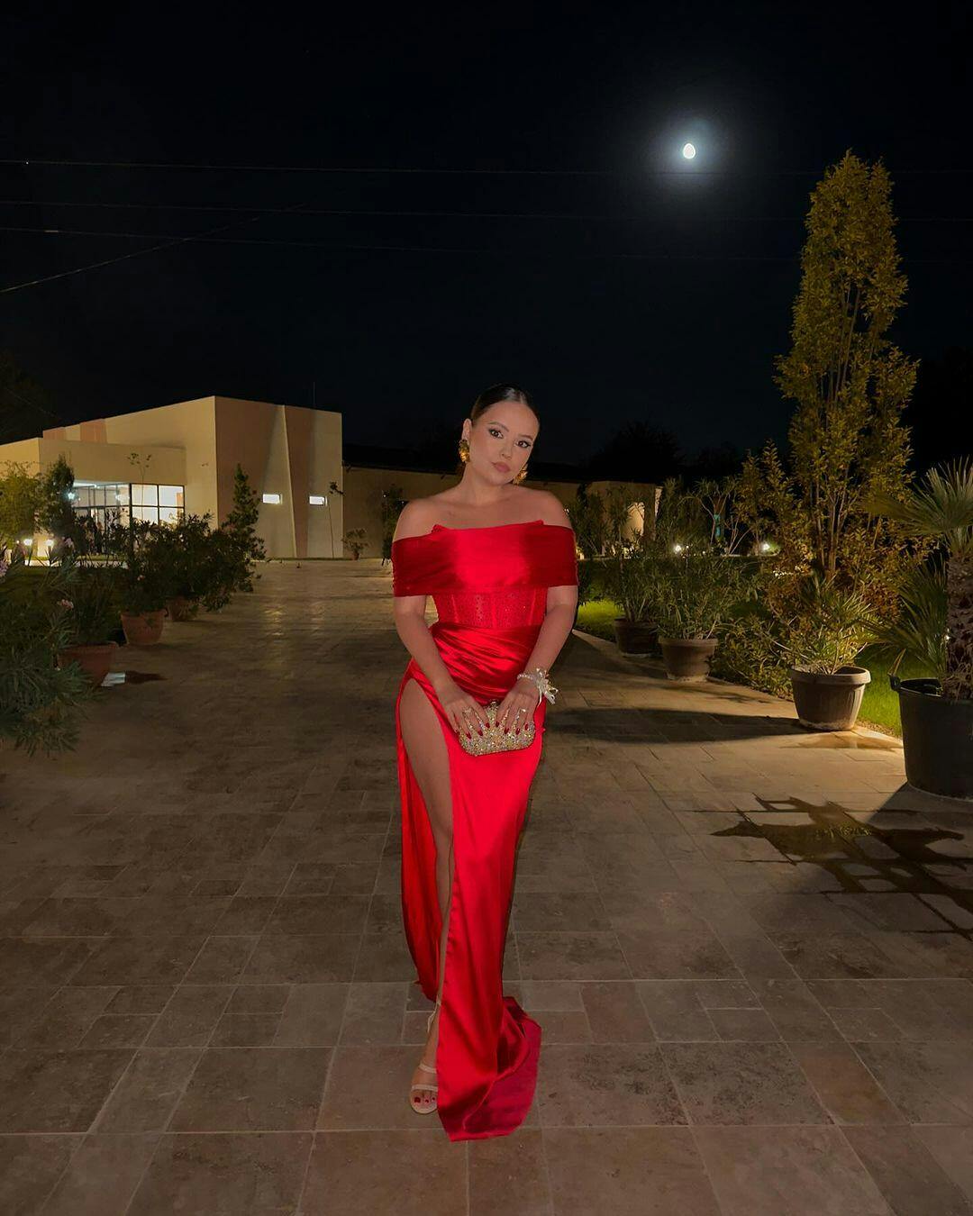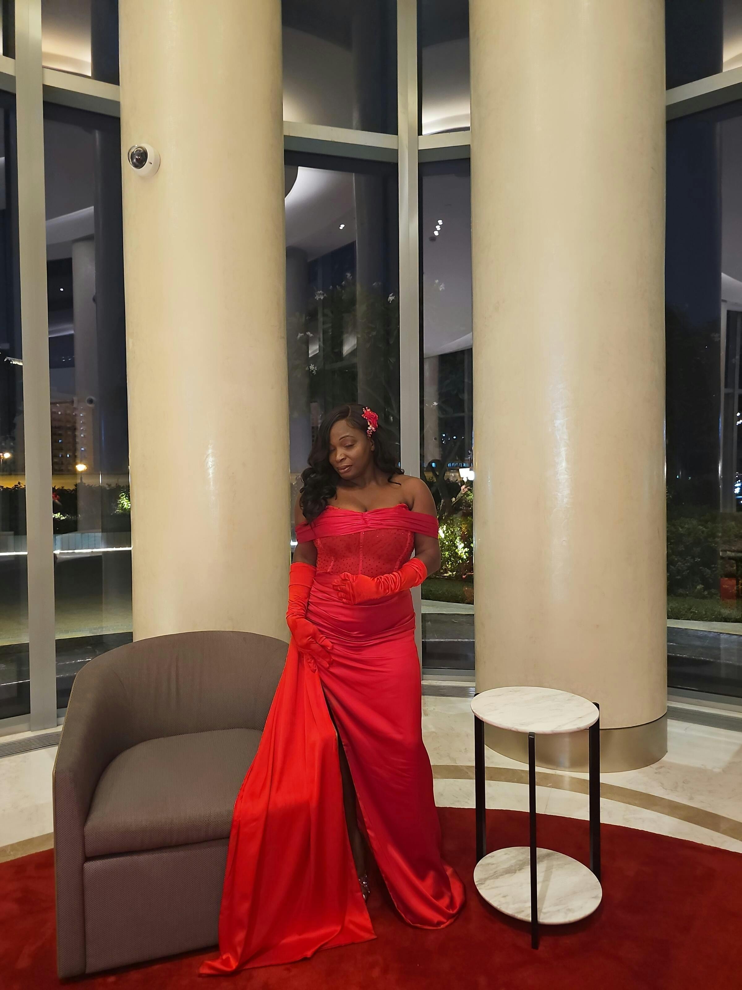 Colia Diamante Mesh Corset Satin Maxi Dress - Red
