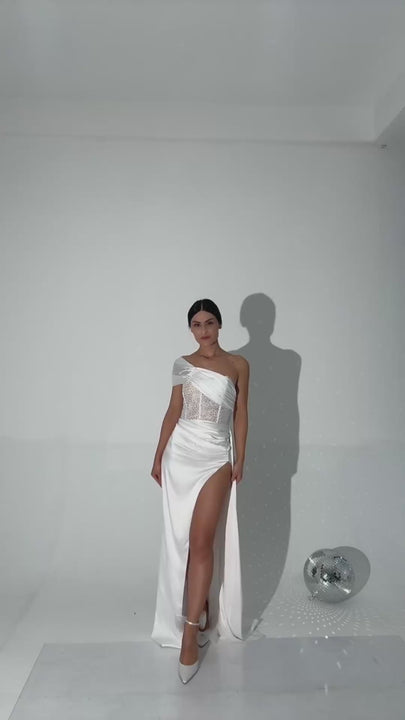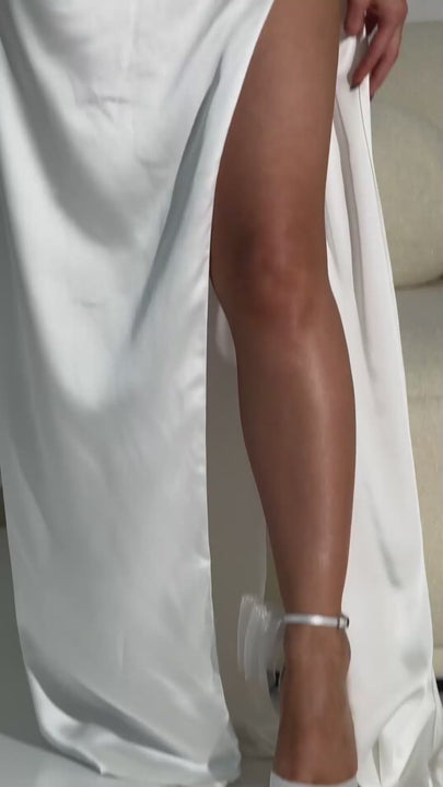 Colia Diamante Mesh Corset Satin Maxi Dress - White