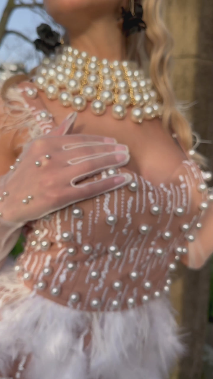 Deloris Pearl Feather Mini Dress
