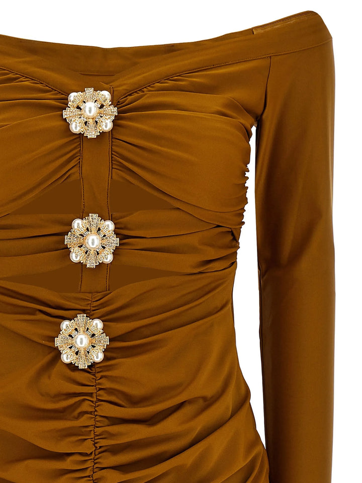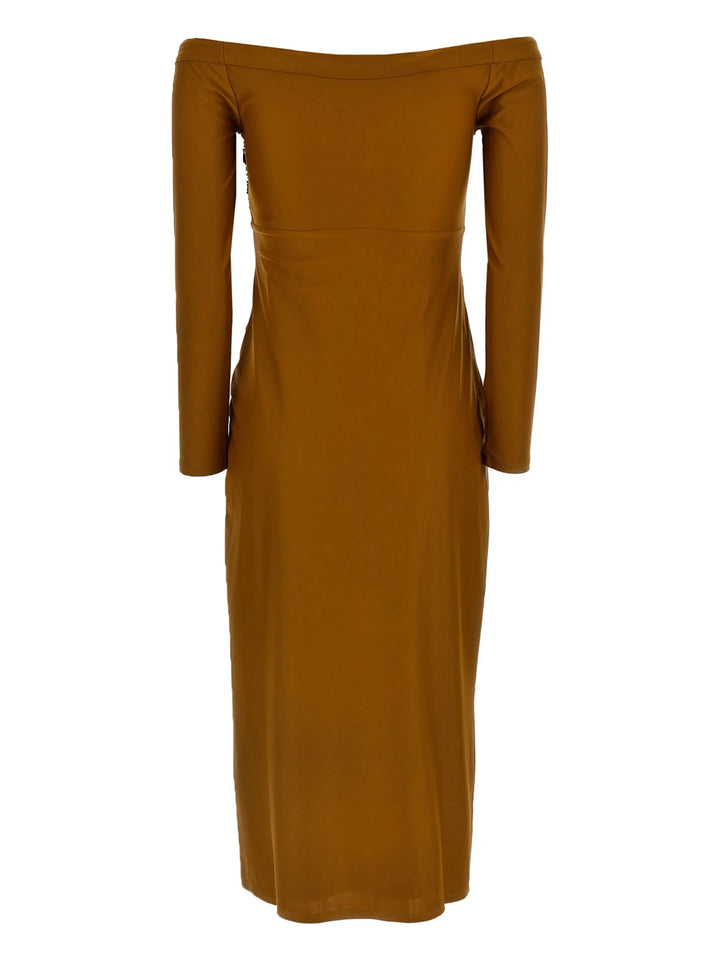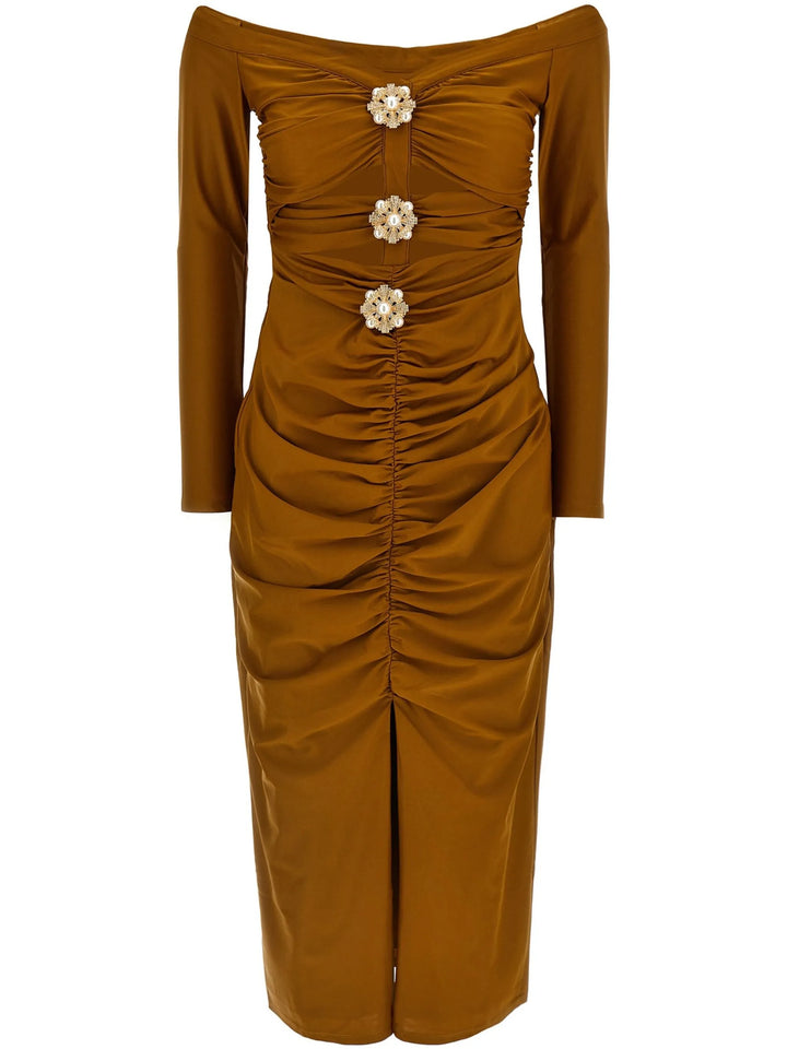 Eliana Straight Shoulder Long Sleeves Bandage Midi Dress