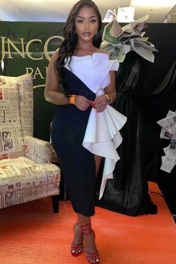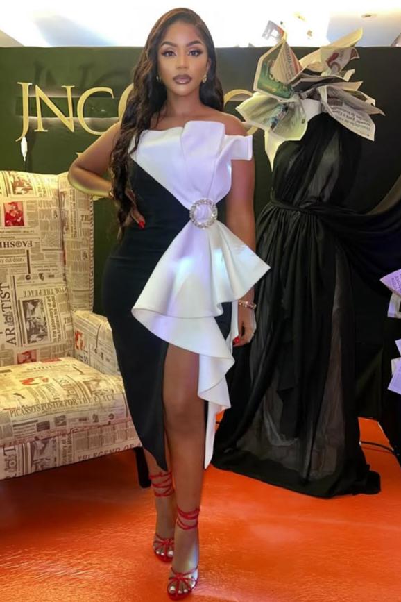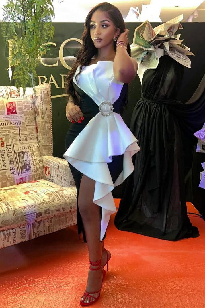 Elosie Open Shoulder Side Slit Bandage Midi Dress