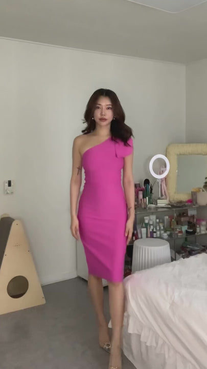 Emalina One Shoulder Midi Cocktail Dress