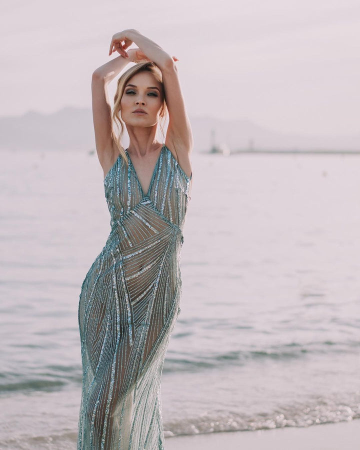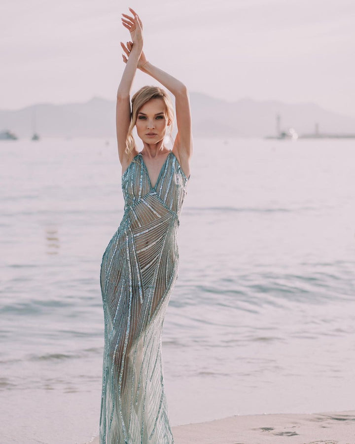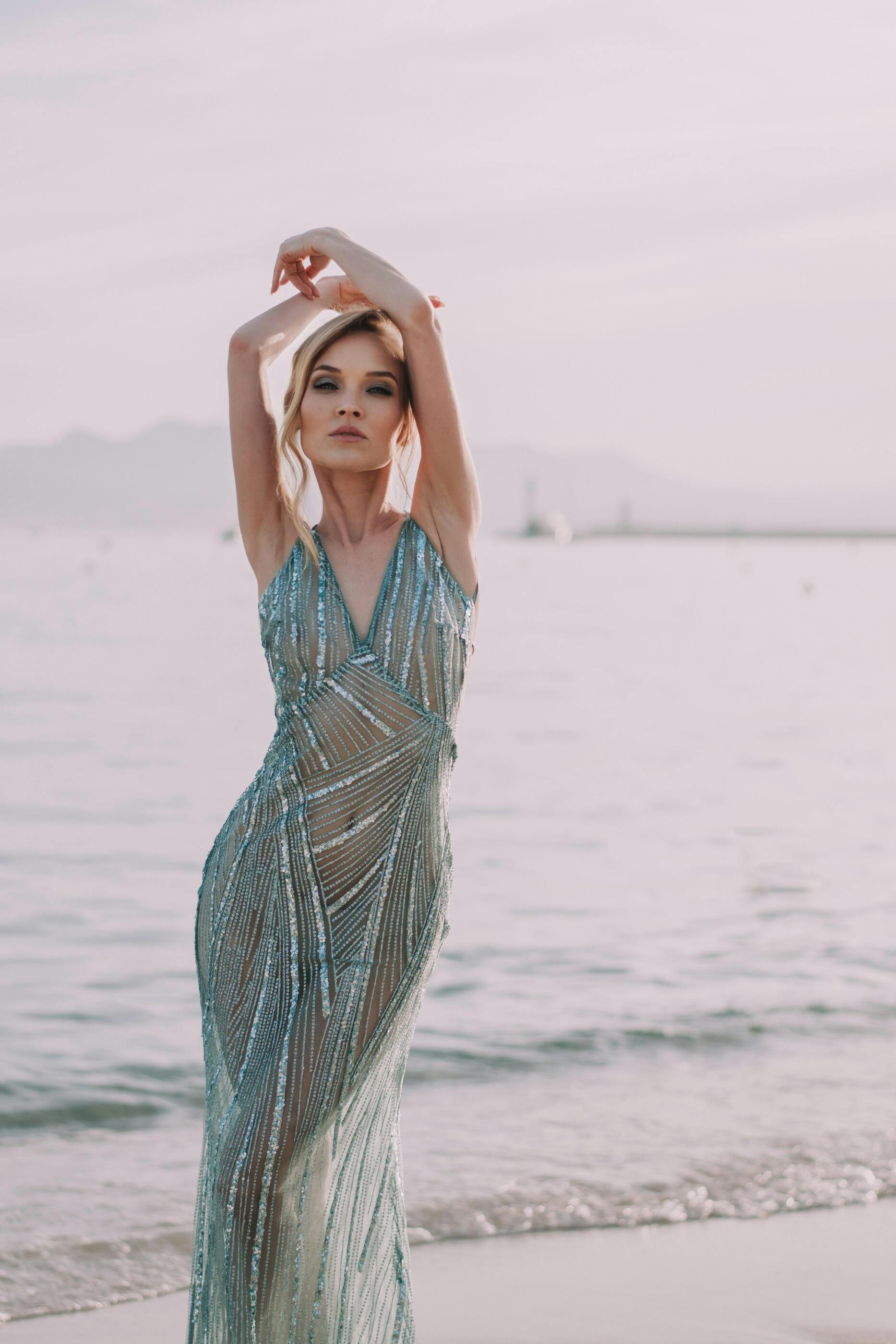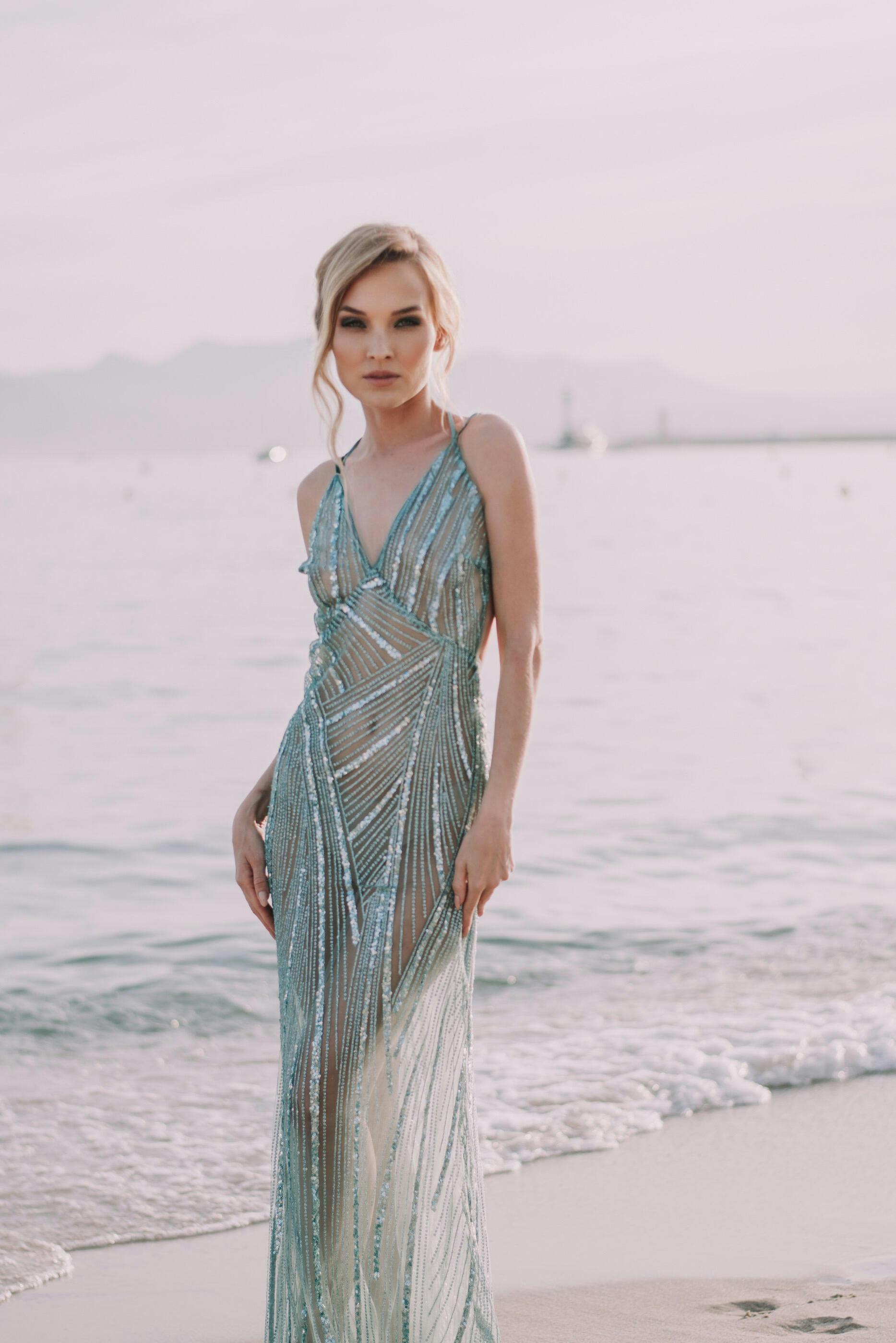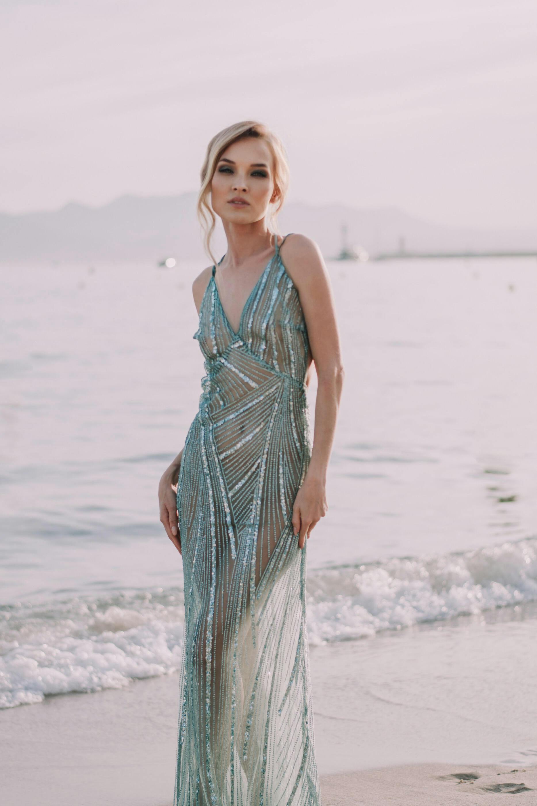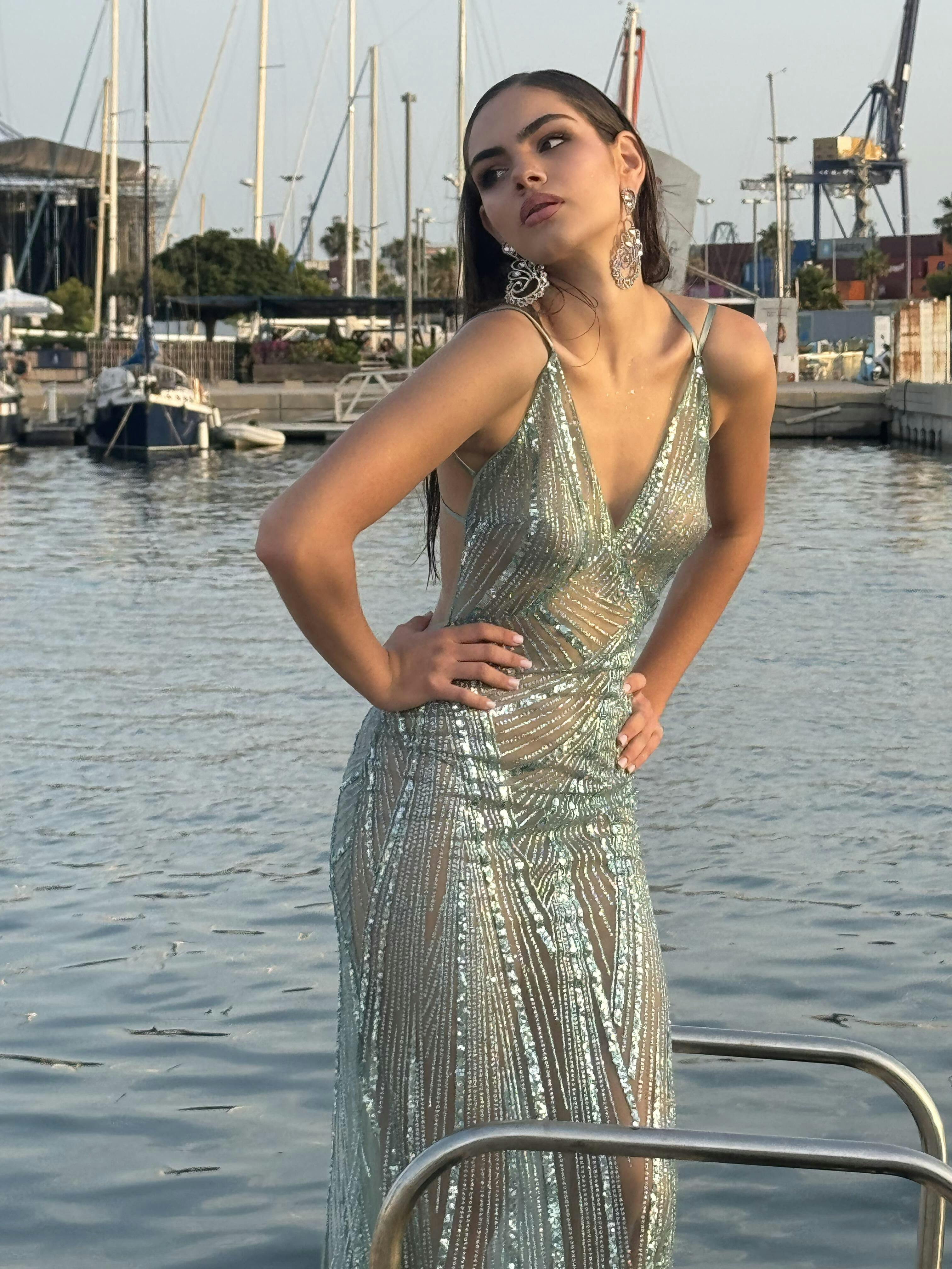 Elevate your fashion game with the Hilia Maxi Dress and leave an indelible mark wherever you go! With its sheer, sparkling fabric, it adds a touch of ethereal charm and contemporary glamour to your look. It is a statement piece that demands attention, featuring a sleek silhouette and a high level of sophistication. Perfect for upscale parties, beachside soirees, or daring date nights. Wear skin-toned or coordinating undergarments that complement your skin tone to maintain a sense of modesty. Opt for strappy sandals, wedges, or transparent heels to maintain the illusion of elongated legs.