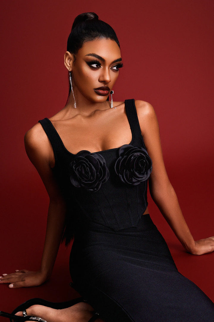 Elevate your elegance and leave a lasting mark with our Holisa Flowers Bandage Set! The Holisa Flowers Bandage Set offers a chic, coordinated look with a floral-accented top and matching high-waisted skirt. The bandage fit enhances the figure, while the delicate flowers add a feminine touch. Accessorize with drop earrings and black heels for a balanced, elegant outfit.
