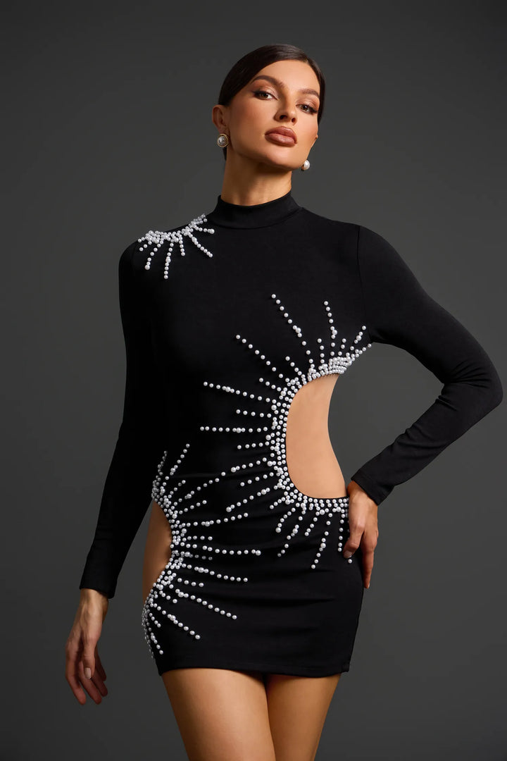Kerade Long Sleeves Pearl Mini Dress