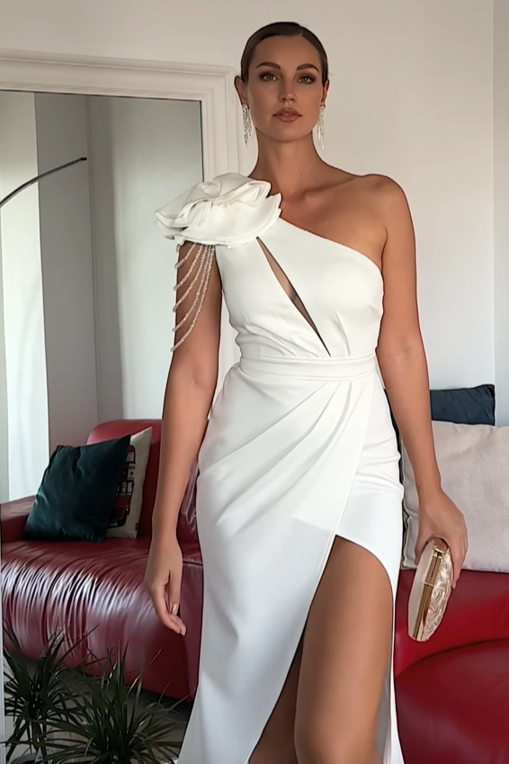 Locia One Shoulder Flower Cut Out Slit Maxi Dress