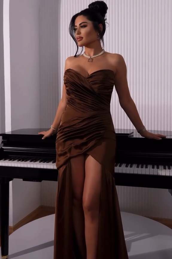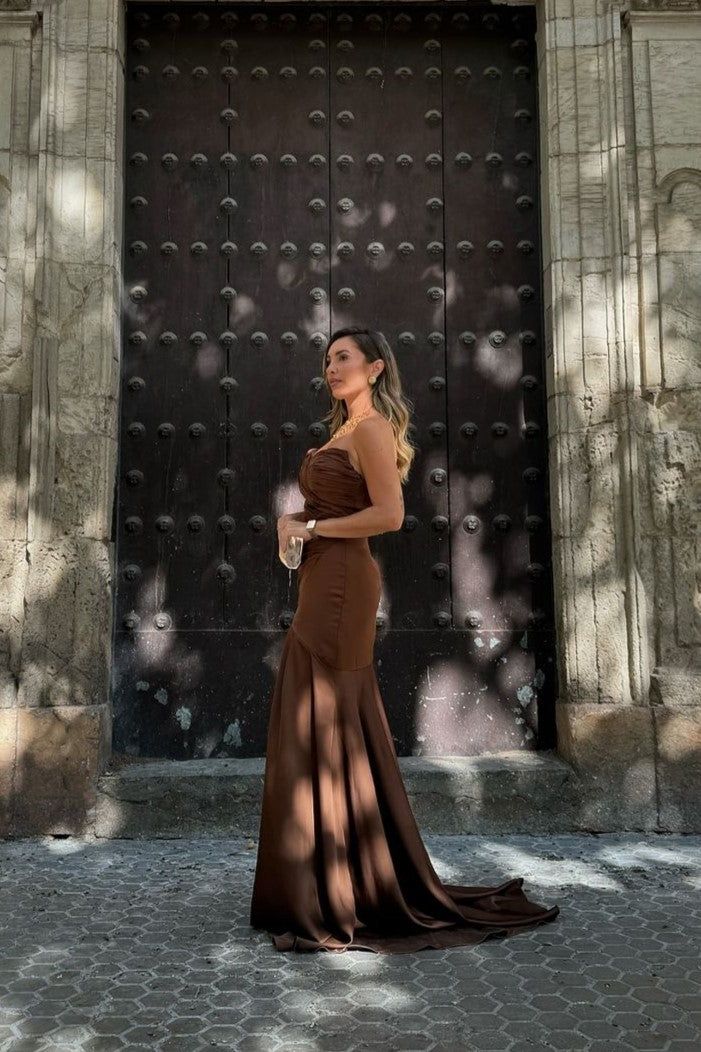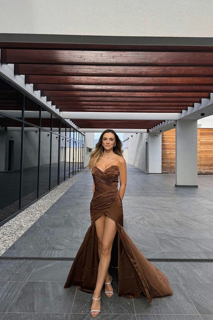 Embrace the Lyari Open Legs Satin Maxi Dress, designed to flatter your figure perfectly! Featuring a luxurious brown hue, this dress is the epitome of elegance, showcasing a sleek silhouette and a seductive open-leg design. Ideal for parties or evening outings, it offers both comfort and style. Complete your look with delicate gold accessories and strappy heels for an added touch of glamour!