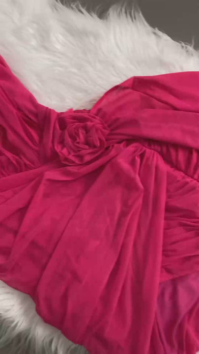 Maggie One Shoulder Mesh Mini Dress - Pink