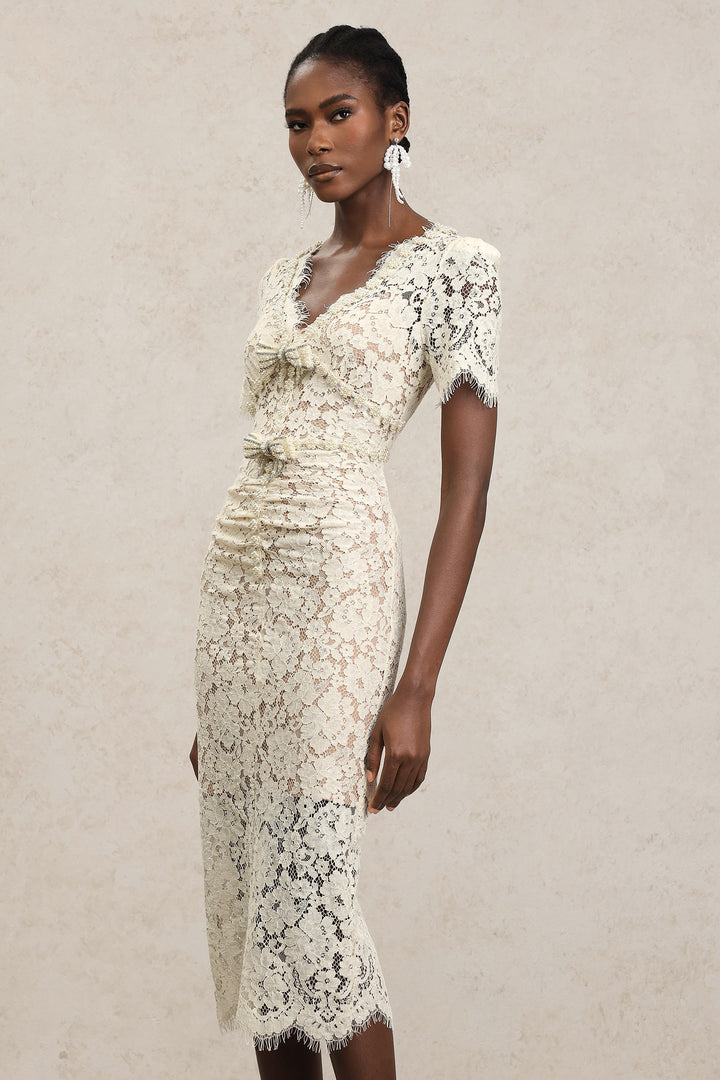 Maisie V-Neck Short Sleeves Bowknot Lace Midi Dress