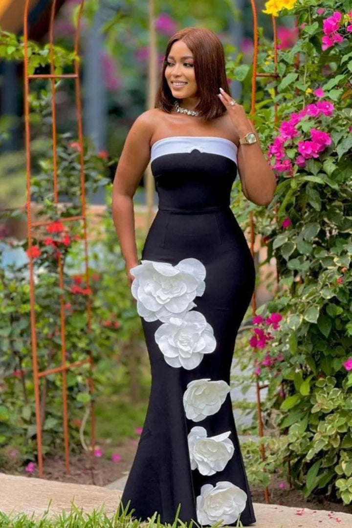 Makala Flower Fishtail Maxi Bandage Dress