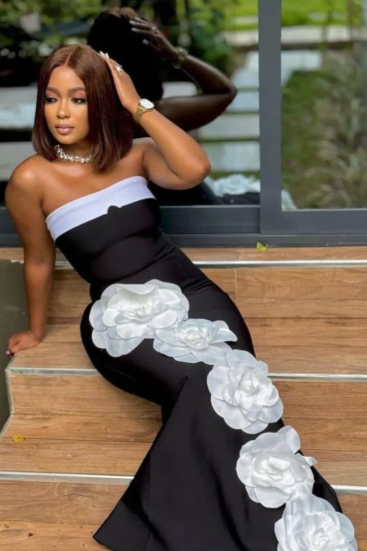 Step into elegance with the Makala Flower Fishtail Maxi Bandage Dress. This breathtaking dress is designed to accentuate your curves while offering a sophisticated and glamorous look. The bandage-style fit ensures a sleek silhouette, while the fishtail hem adds a dramatic flair. Adorned with white delicate flowers, this maxi dress is perfect for formal events, weddings, or any special occasion where you want to make a lasting impression. This special dress paired with a pair of heels is also a hands-down winner!