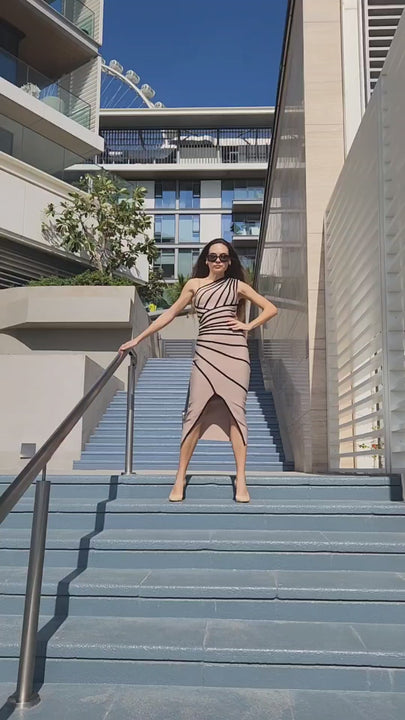Naku One Shoulder Slit Midi Bandage Dress