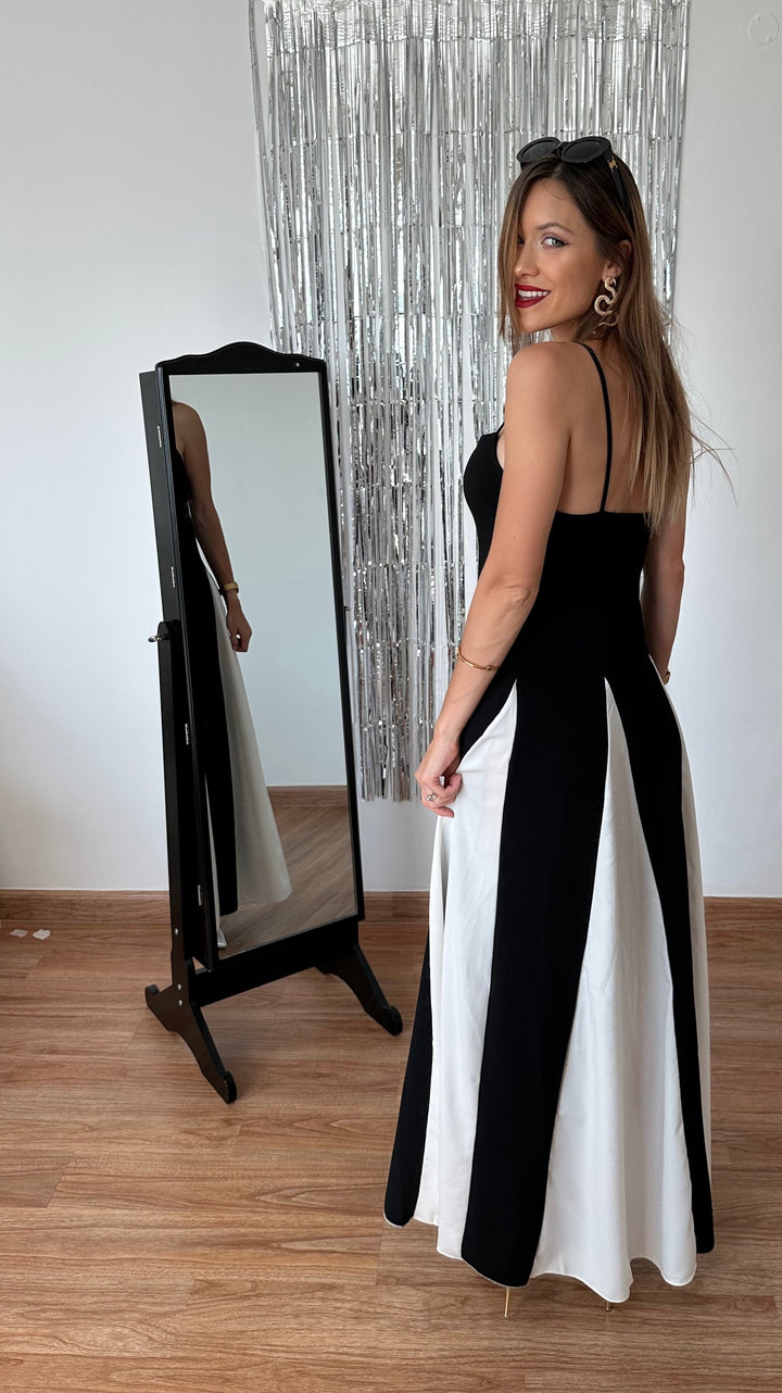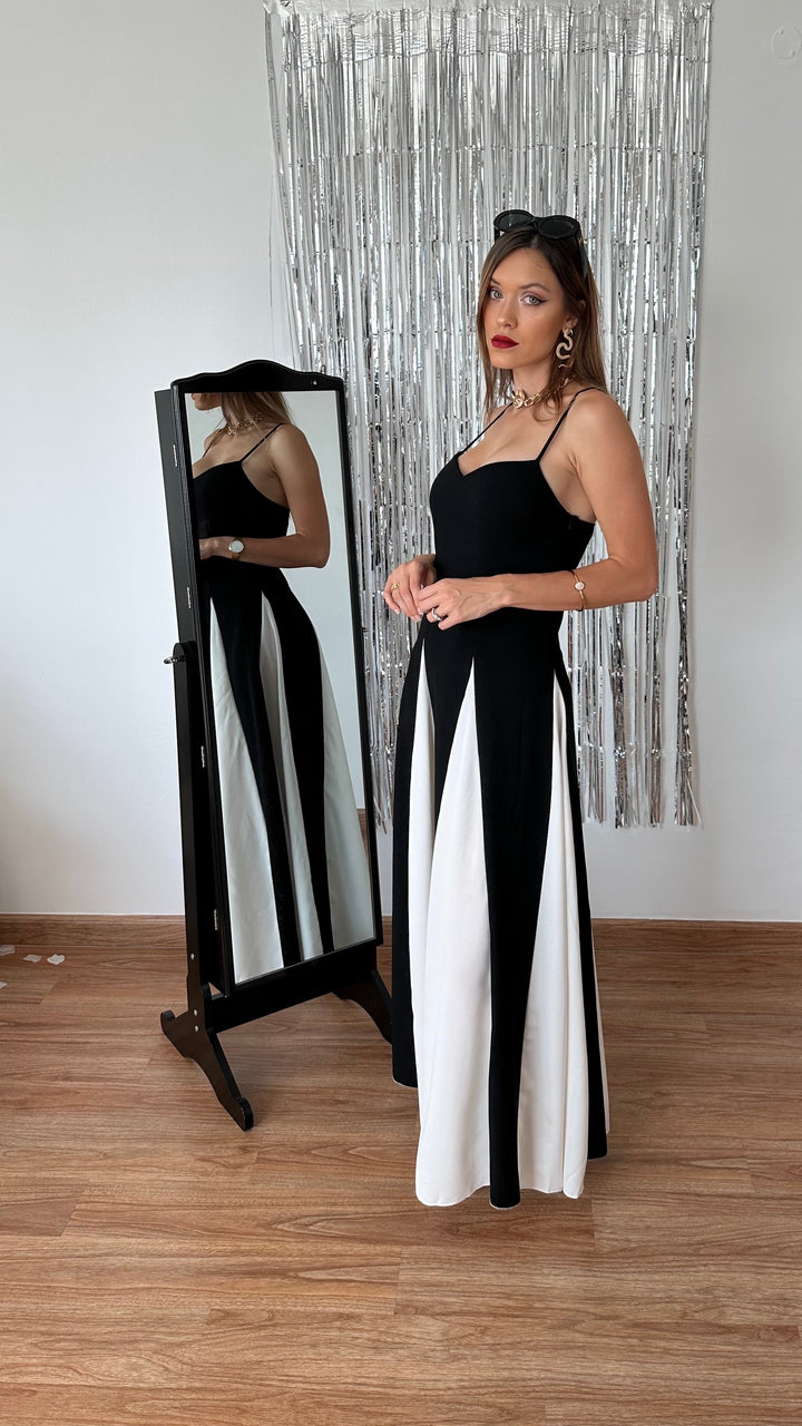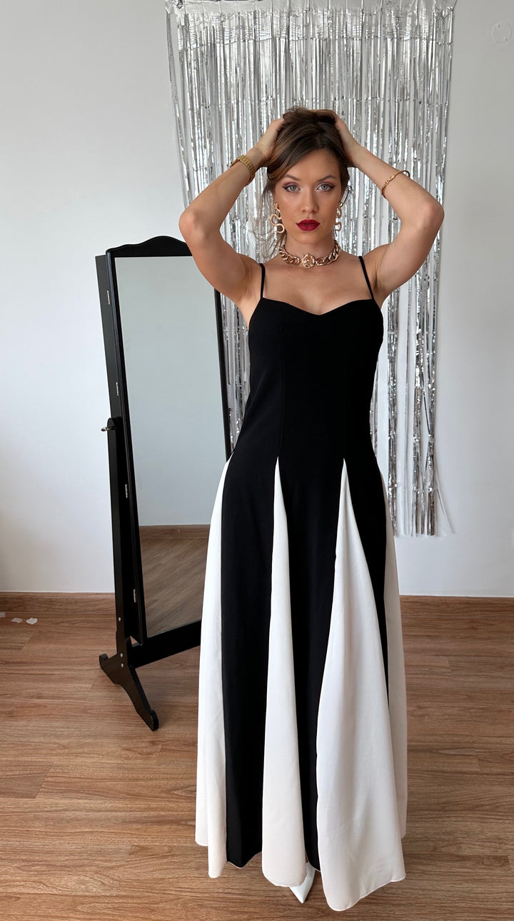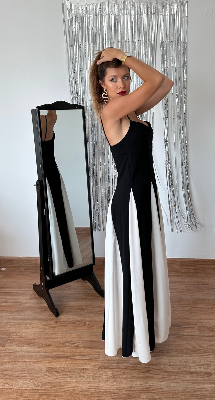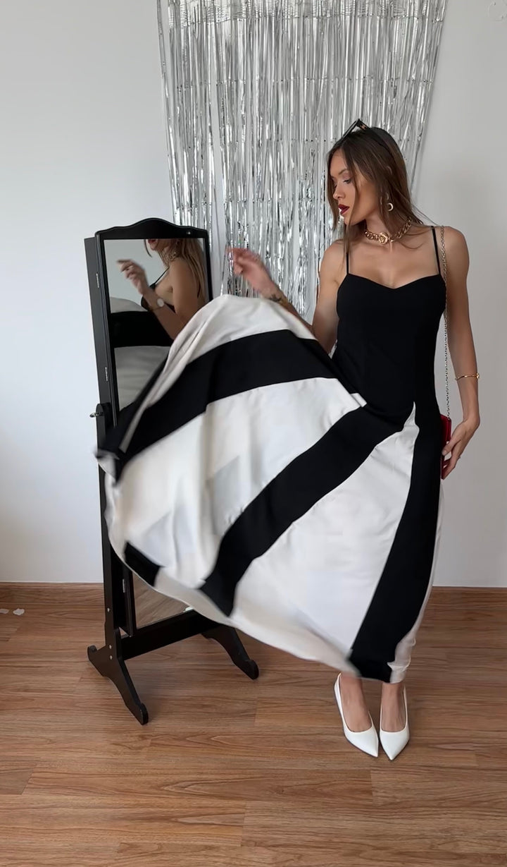Adore Nikki Halter Patchwork Midi Dress to flatter your figure perfectly! This midi dress boasts a stylish halterneck and a unique patchwork design that seamlessly blends classic black and white hues, making it a versatile option for both vacations and birthday celebrations. Elevate your look by pairing the dress with sleek black heels and accessorize with a bold-colored statement clutch to accentuate the monochrome palette.