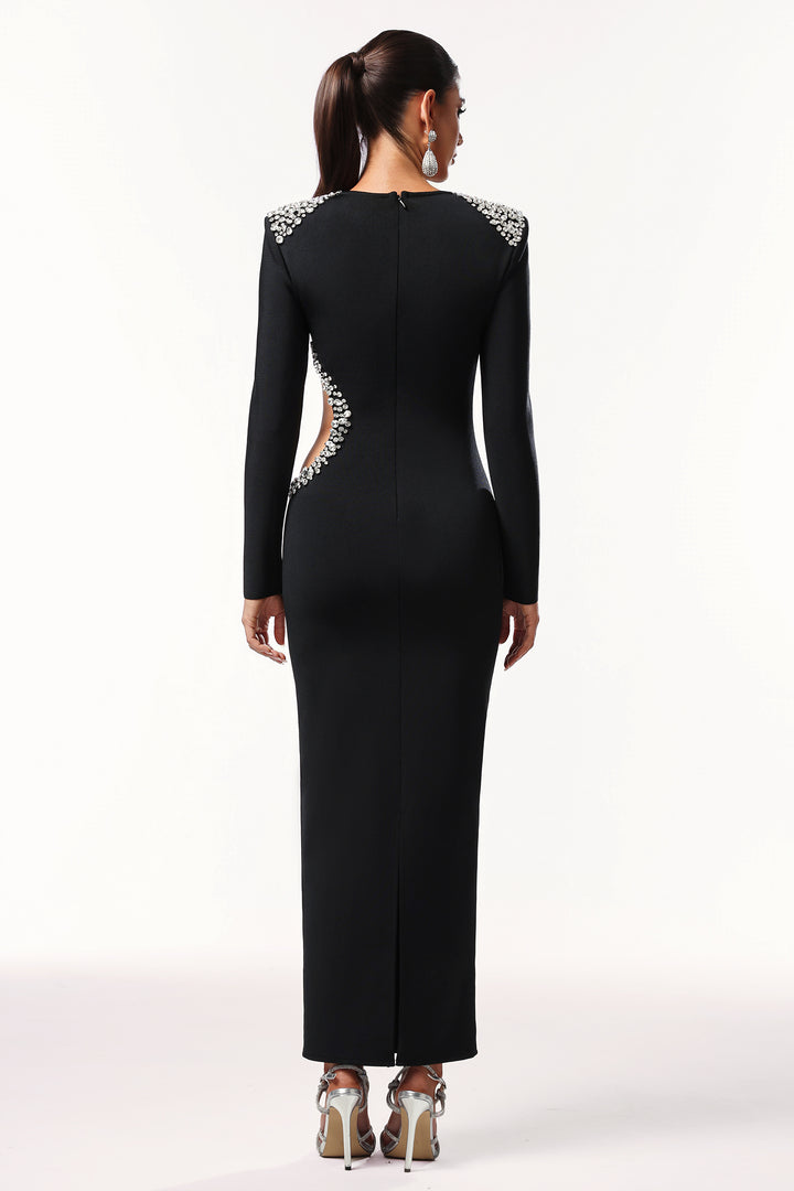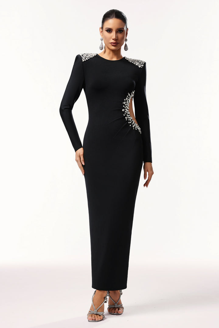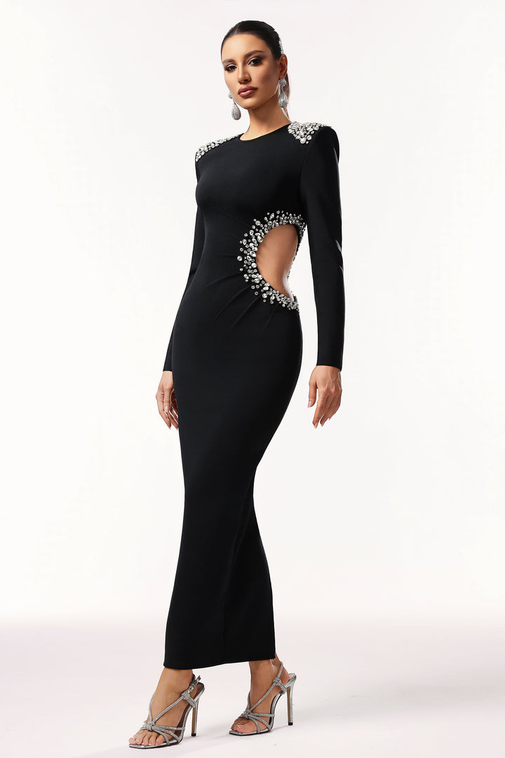 Oliay Long Sleeves Hollow Out Diamond Bandage Maxi Dress