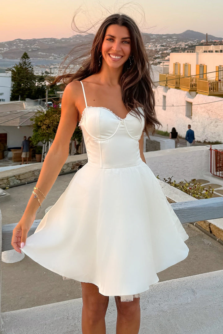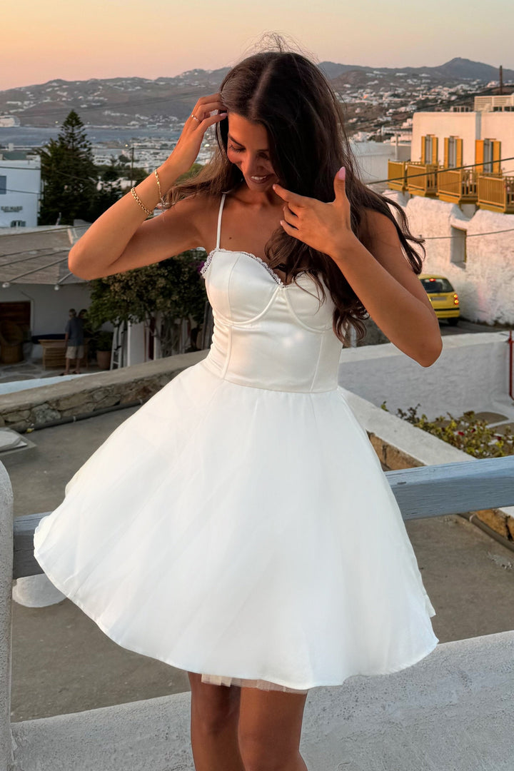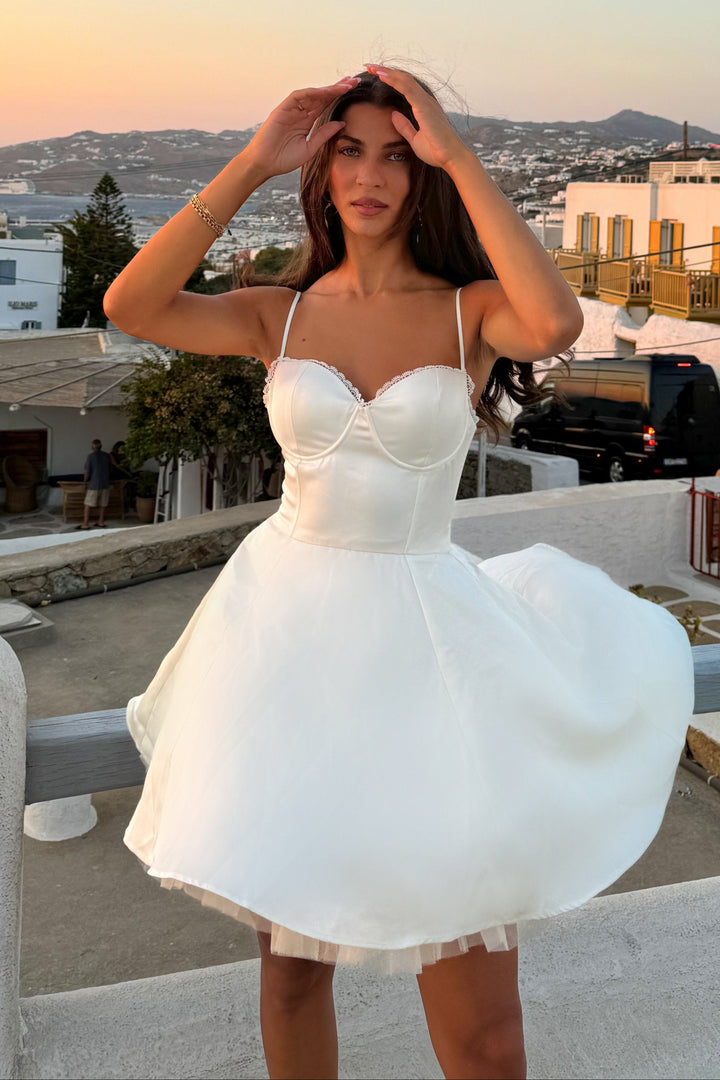 Renaa Mesh Lining Flared Mini Dress - Beige
