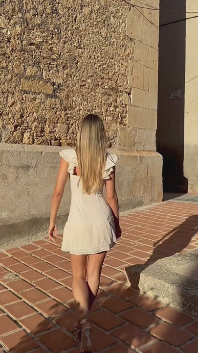 Rimo Ruffled Ribbon Buckled Mini Dress