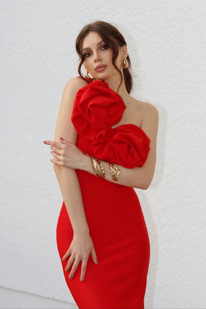 Salacia Sleeveless Flowers Bandage Midi Dress