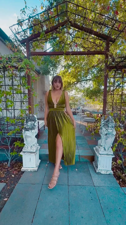 Thyme Velvet Slit Midi Dress