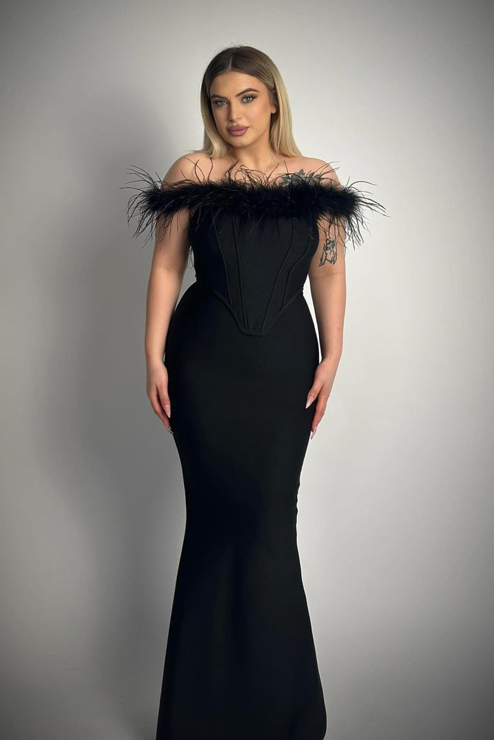 Our Xuliy Feather Maxi Bandage Dress is sure to wow the crowd at your next special event! Comfortable bandage shapes a seamed, neckline adorned in feather bodice with strapless, while a bodycon maxi skirt hugs your curves below a fitted waist.All black look perfect for showing your power and seduction!