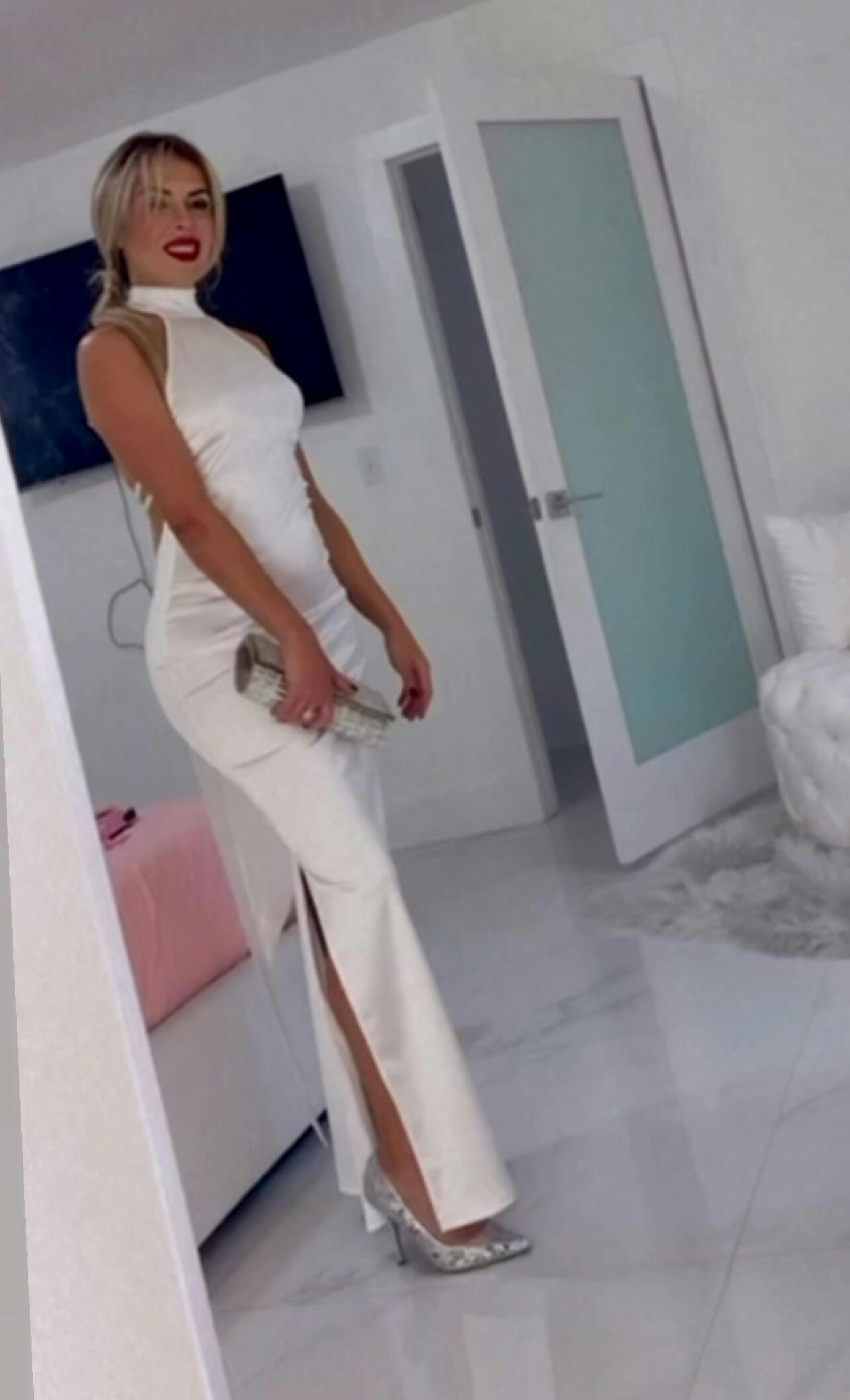 For a touch of pure elegance, look no further than our Yuico Halter Satin Maxi Dress! Its halter neckline adds a sophisticated touch, while the pearl chain design on the back enhances the dress's luxurious feel. This elegant, flowing design is perfect for formal occasions. Complement it with simple silver jewelry and strappy heels for a refined look.